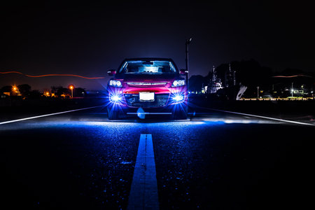 Modern luxury car headlight.The system of the car headlights is used to illuminate at night for driving safety.