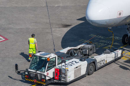Berlin Germany - April 21. 2018: Pushback tractor at Berlin Tegel airport waiting for work