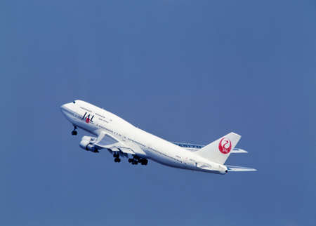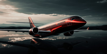 Commercial airplane flying in the blue sky. 3d render illustration.