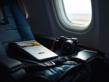 Airplane cabin seats with passengers. Economy class of new cheapest low-cost airlines without delay or cancellation of flight. Travel trip to another country.
