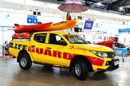 Rescue vehicle. A life-saving vehicle at the international exhibition ARMS AND SECURITY - 2021. Selective focus. Kiev. Ukraine - June 18, 2021.