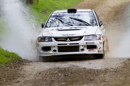POMBAL, PORTUGAL - SEPTEMBER 22: Luis Duarte drives a Mitsubishi Lancer EVO IV during Rally Centro de Portugal 2012, in Pombal, Portugal on September 22, 2012.