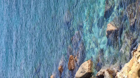 Spectacular aerial sea landscape of rocky coast and crystal clear water.