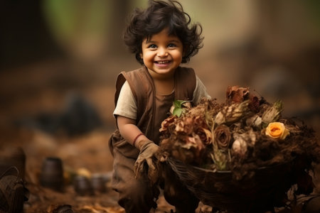 Indian little boy wearing a headscarf on the banks of the river