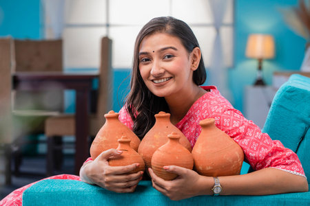 Portrait of a beautiful young woman with earthenware pots.