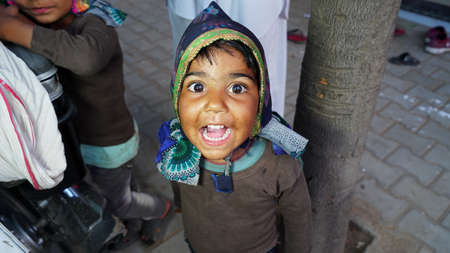 08 February 2021- Khatoo, Jaipur, India. Cheerful cute little kid giving smile against the camera. Smiling face of joyful kid.