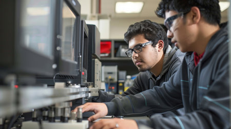 Mechanical engineers collaborate in a high-tech lab, developing the next generation of sustainable energy machines.
