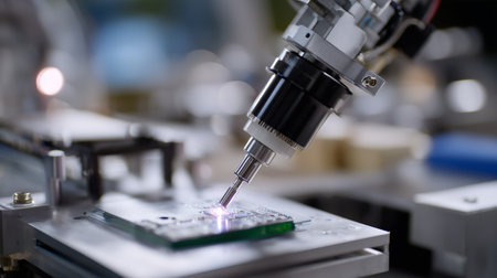 Precision machinery assembles circuit board in a modern factory setting