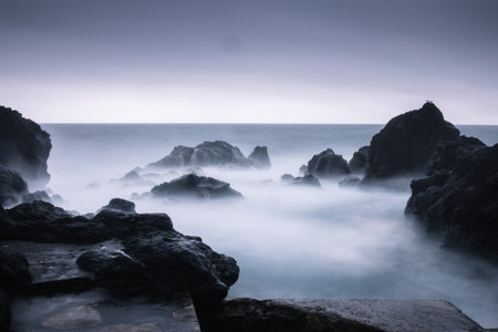 Rocks at shore long exposure landscape