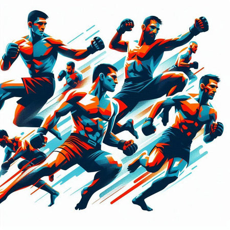 cage fight tournament with fighters showcasing their skills and moves in the cage, created with generative ai