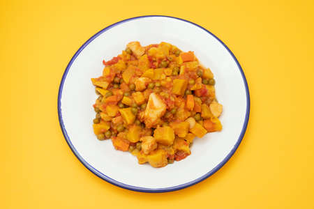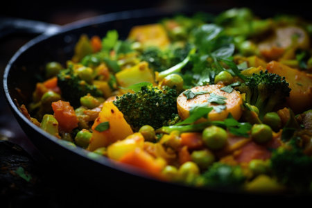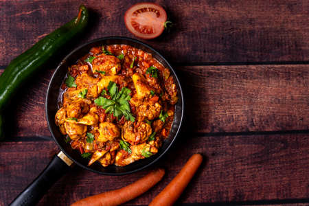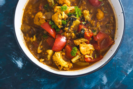 healthy plant-based food recipes concept, vegan cauliflower and capsicum curry dish with indian spices