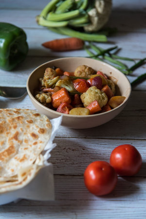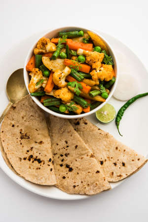 Mix Vegetable greavy recipe in a bowl, Indian restaurant style veg recipe served with Chapati