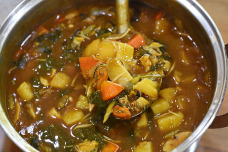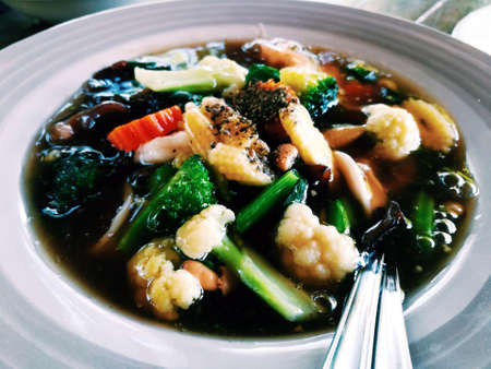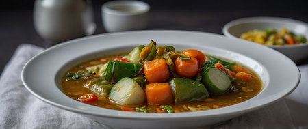 AI Generated. One common Indonesian cuisine is sayur asem, sometimes known as sayur asam presented in a white dish