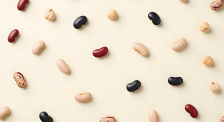 Healthy food background. Colored raw beans on top.