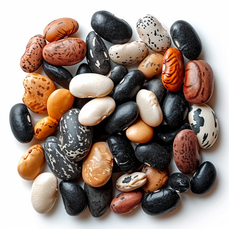 Multicolored beans, many different varieties of legumes, isolated white background AI generated image