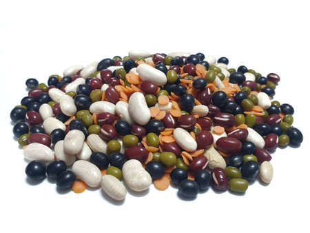Mixture of dry beans isolated on white background