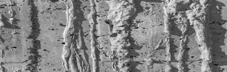 This image showcases a close-up view of a textured concrete material. The composition features swirled lines and a rough, granular surface. The color palette consists primarily of gray tones. This type of imagery could be used for various purposes, including editorial content, design projects, and abstract illustrations.