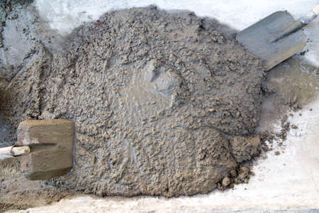 spade and wet cement for construction process