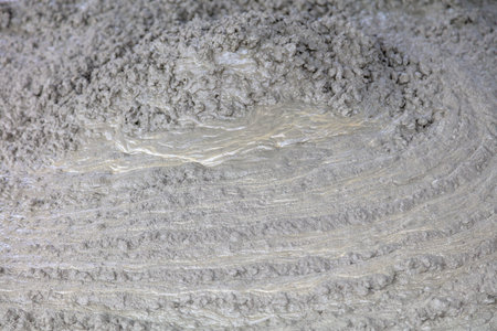 fresh cement or mortar mixed with water, topview and closeup