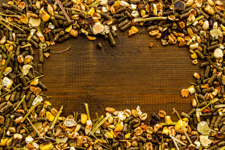 Frame of rodent dry food, treats for pet, top view
