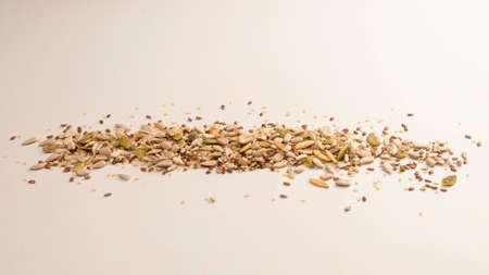 Mix of seeds for a salad. A pile of mixed seeds isolated on a white background.