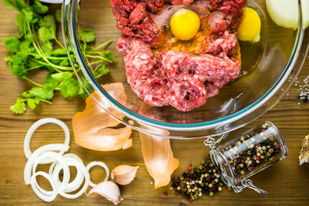 Ingredients for meatballs recipe on the table.