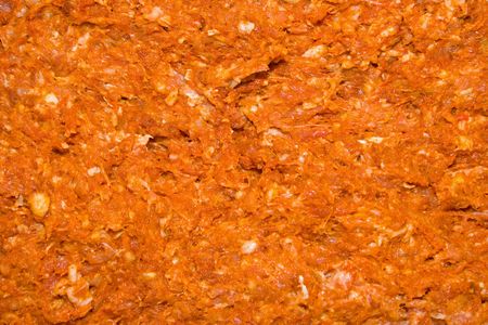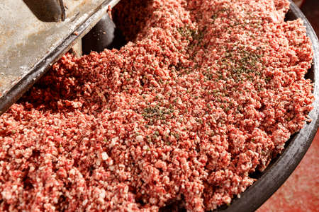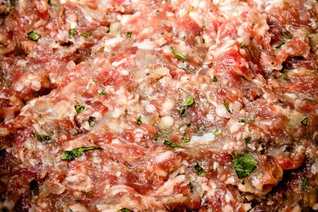 Texture of minced meat, fresh mince with condiments