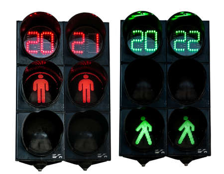Traffic light for pedestrians. Isolate. Red numbers 2021. Green numbers 2022. New year holidays concept.