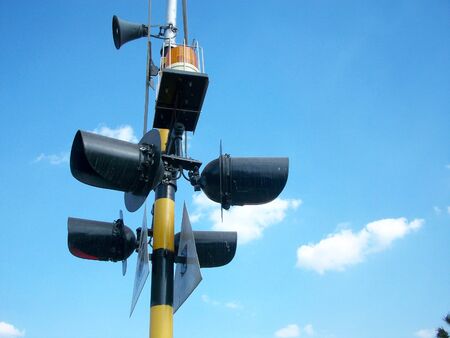 Train traffic light system with blue sky background