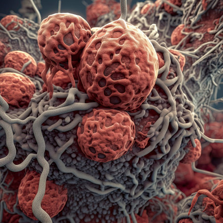 Vivid portrayal of cellular structures showcasing detailed biological research.
