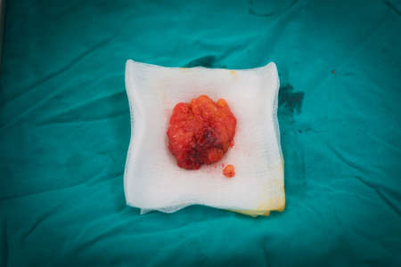 ovary taken during surgery after castration of the cat in a veterinary clinic