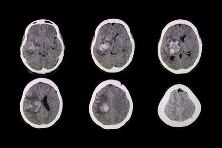CT brian scan of the patient with hemorrhage and hematoma at right basal ganglia.