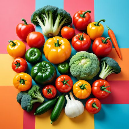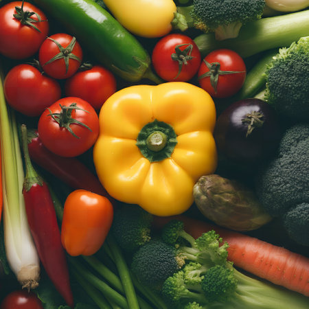 Vibrant colorful vegetables arranged beautifully, showcasing fresh produce for healthy eating and culinary inspiration.