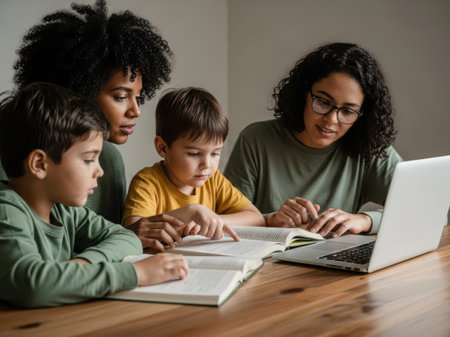 Family engaging in collaborative learning session