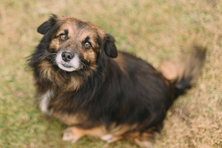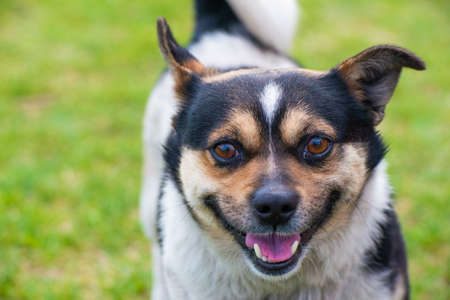 Portrait of a beautiful mixed breed dog in the park. Selective focus.
