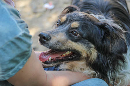 Homeless dog. Happy homeless dog. Hairy dog