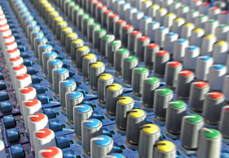 Control nobs on a sound mixing board, useful for various music and sound themes