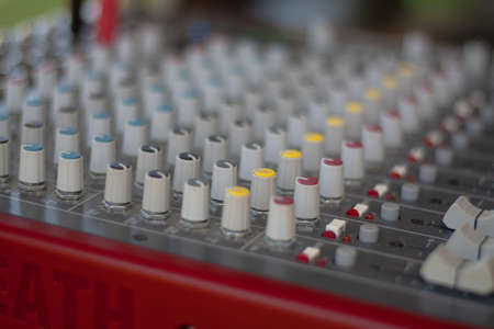Analogue sound mixing table. Foreground and background out of focus, focus in the middle of the shot