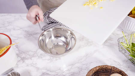 Step by step. Mixing ingredients for vanilla cupcakes.