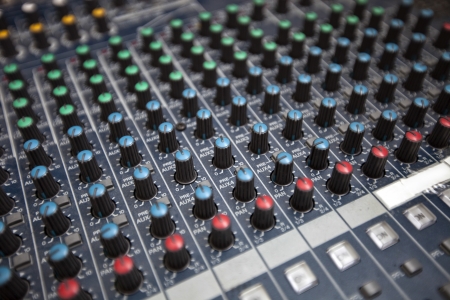 Analogue sound mixing table. Foreground and background out of focus, focus in the middle of the shot