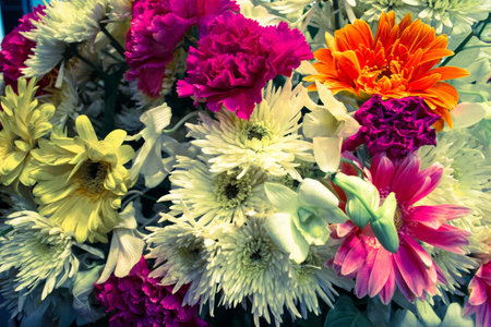 Close up colorful bunch of beautiful flowers.Vintage or retro tone