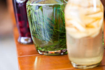Interior design with glass bottles of syrup