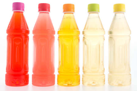 Bottles of juices on white background