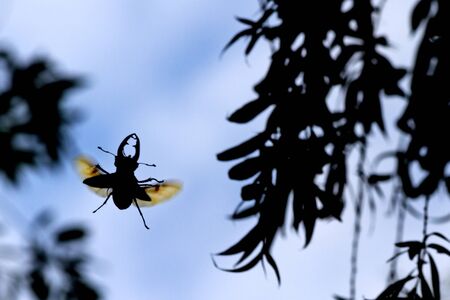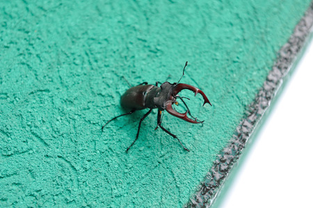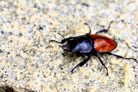 Endangered species of rosacea beetles. Lucanus cervus in nature.