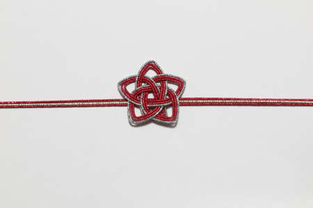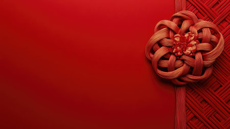 This image features a vibrant red background complemented by an intricate decorative knot, symbolizing charm and good fortune, perfect for festive occasions.