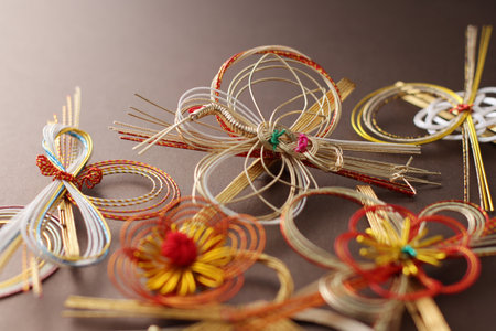 Handmade Japanese ornaments (MIZUHIKI) with copy space.