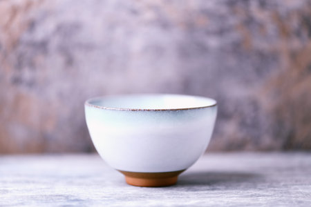 Traditional Chinese porcelain bowl on a light background. Selective focus.