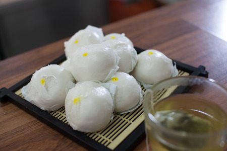Japanese traditional confectionery cake wagashi or temari mooncake