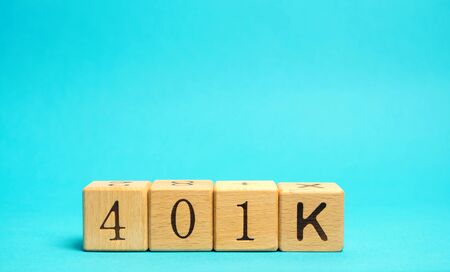 Wooden blocks 401K. Private pension plan. Tax-qualified. Business and finance concept. Retirement Plan. Savings, save
