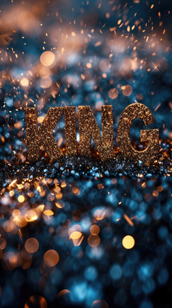 Flat lay yellow letters saying open your mind. Many sequins on blue background.